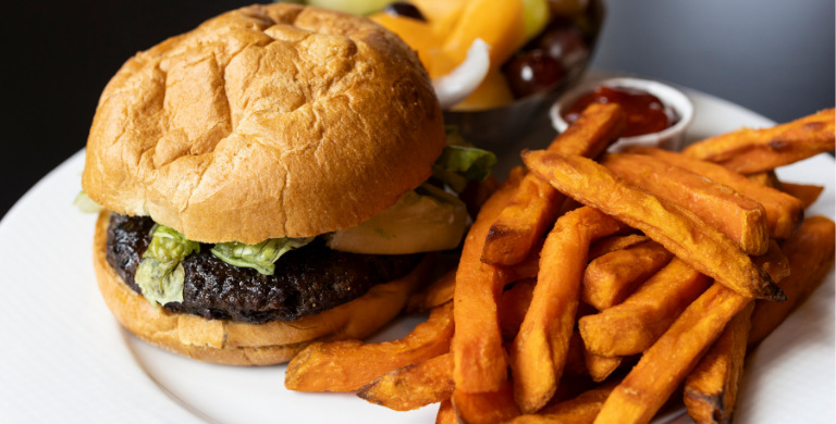 The Bistro Grille station at the DUC offers grilled favorites including burgers, grilled sandwiches, sides, and a beloved menu item – the Half & Half!