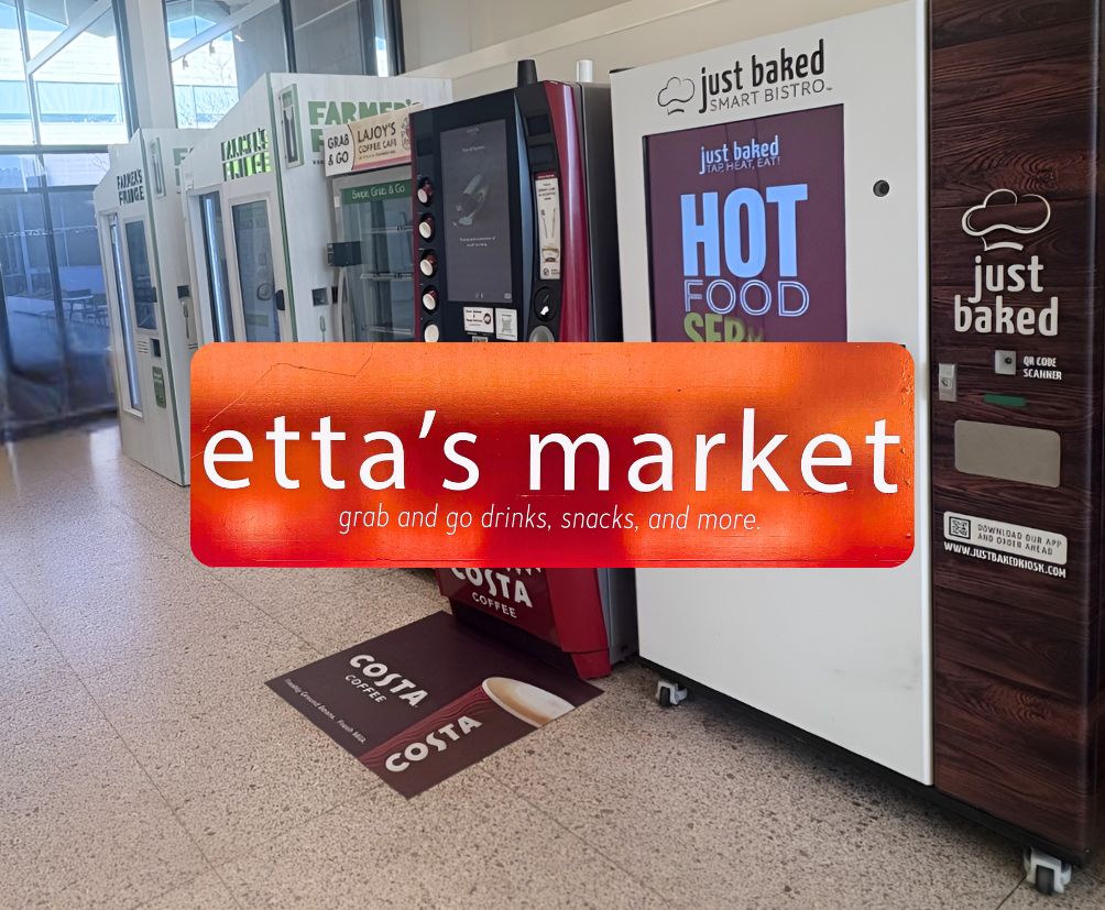 Etta’s is a self-service micro-mart in Steinberg Hall featuring a Costa Coffee machine, Farmer’s Fridge machine, and Food Spot refrigerator stocked with grab & go items. All machines are available 24/7.